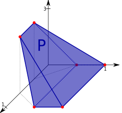 Exemple de polyèdre dans un problème à trois variables (donc en 3D) :